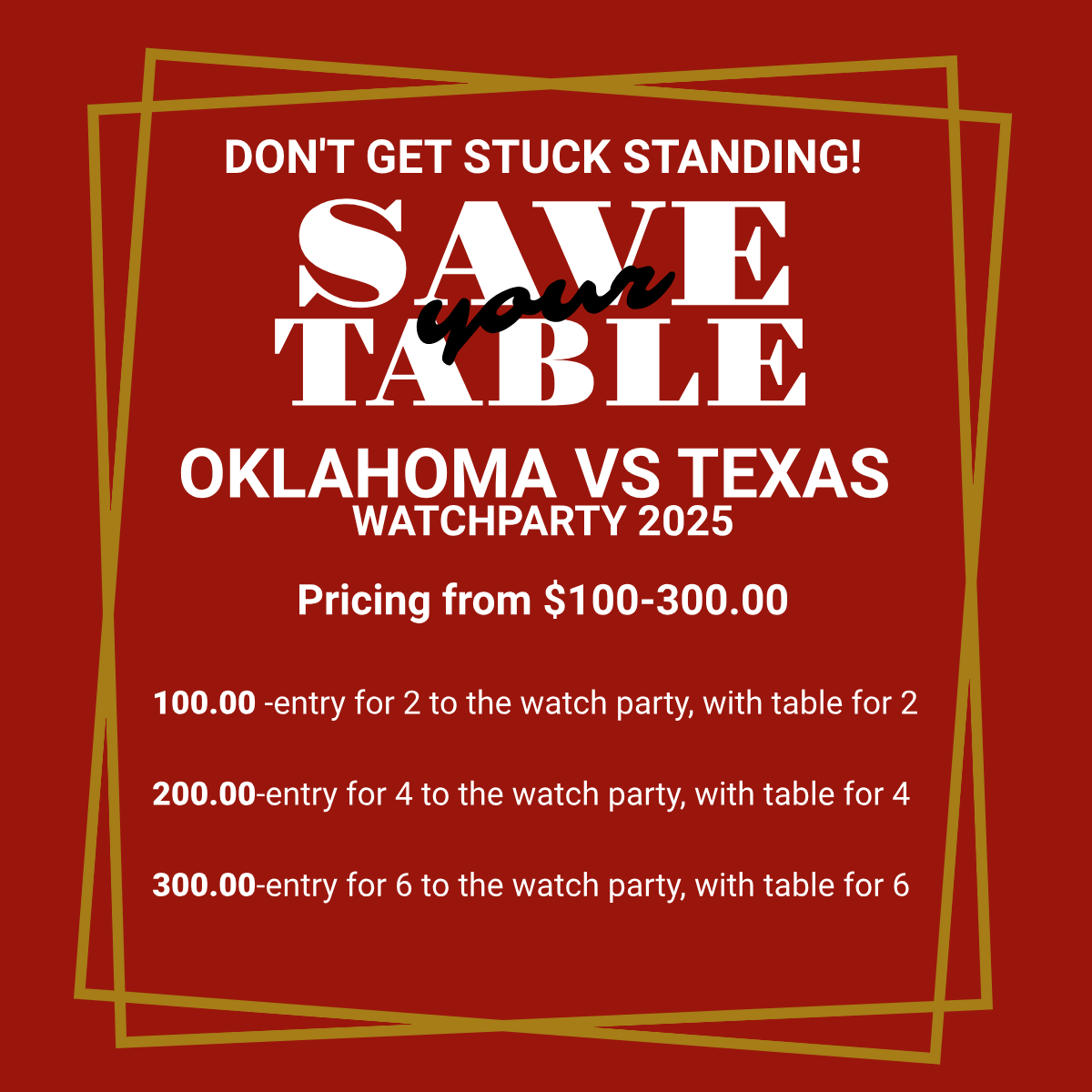 100.00 -entry for 2 to the watch party, with table for 2